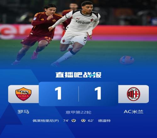 体育播报1月26日宣 意甲第22轮,罗马坐镇主场罗马奥林匹克球场迎战AC米兰。上半场,罗马成围攻之势,马伦错失良机。易边再战,科内伤退,德温特破门,巴尔泰萨吉手球送点,佩莱格里尼点射扳平。最终罗马1-1米兰。积分榜方面,罗马43分第三,米兰47分第二落后榜首国米5分。