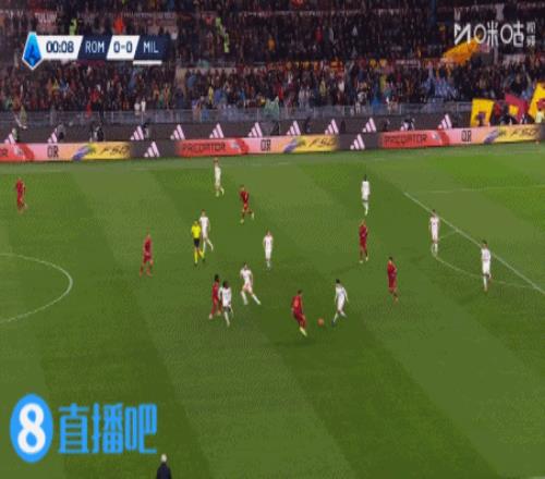 第8分钟,罗马前场耐心传导寻找机会,弧顶位置科内空位机会晃过防守低射被扑↓