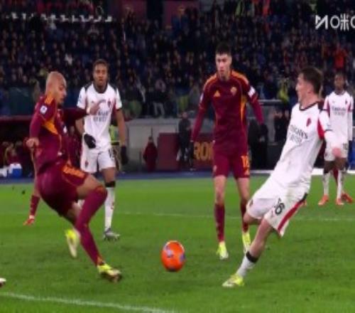 第74分钟,罗马左路传中到后点,切利克极限救球造成巴尔泰萨吉手球,主裁判罚点球,佩莱格里尼主罚命中!罗马1-1米兰↓