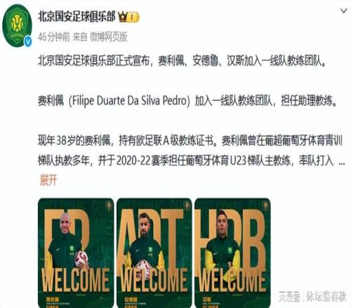 虽然球队的新外援迟迟没有动静,但国安的冬训却并没有停下脚步。正当球迷还在刷新转会消息时,俱乐部在今天正式官宣,一线队教练组迎来三位新成员。费利佩、安德鲁、汉斯同时到位。