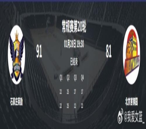 石家庄英励 91-81 北京首钢园,艾米莉·波特23分10篮板砍下两双,王丽丽20分7篮板4助攻5抢断数据全面,凯拉·戴维斯18分。北京女篮郑茗22分,爱丽丝·库内克17分5篮板,凯·詹姆斯15分8篮板,李一凡10分5篮板。