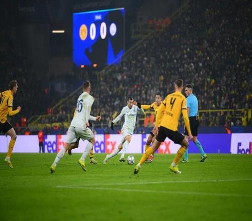 上半场比赛结束,我们暂时客场0比0战平多特蒙德。