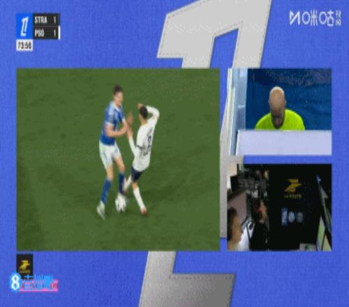 体育播报02月02日宣 法甲第20轮,斯特拉斯堡主场迎战巴黎圣日耳曼,比赛第75分钟,阿什拉夫踩踏,裁判先出黄,查看VAR后改直红。