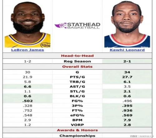 随后,他直接晒出了詹姆斯和伦纳德本赛季的数据对比。赛季至今,詹姆斯场均21.9分5.8板6.6助1.1断,伦纳德场均27.7分6.1板3.5助2.1断。