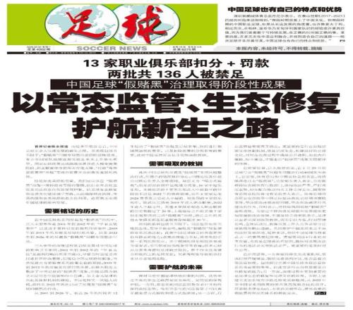 恰是如此美好的前景,我们更应该在“假赌黑”治理中保持最高等级的警惕,以行业常态化监管及司法常态化监管保驾护航,以足球生态修复和足球文化建设铺平前路,以此确保球迷热情、市场热情和各类资源的最大化利用,进而真正实现中国足球的振兴发展。