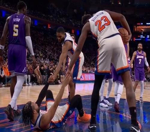 场上是对手!布伦森倒地拒绝东契奇拉自己随后被队友拉起